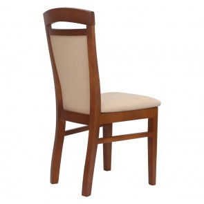 Krzesło ma tapicerowane siedzisko i oparcie.