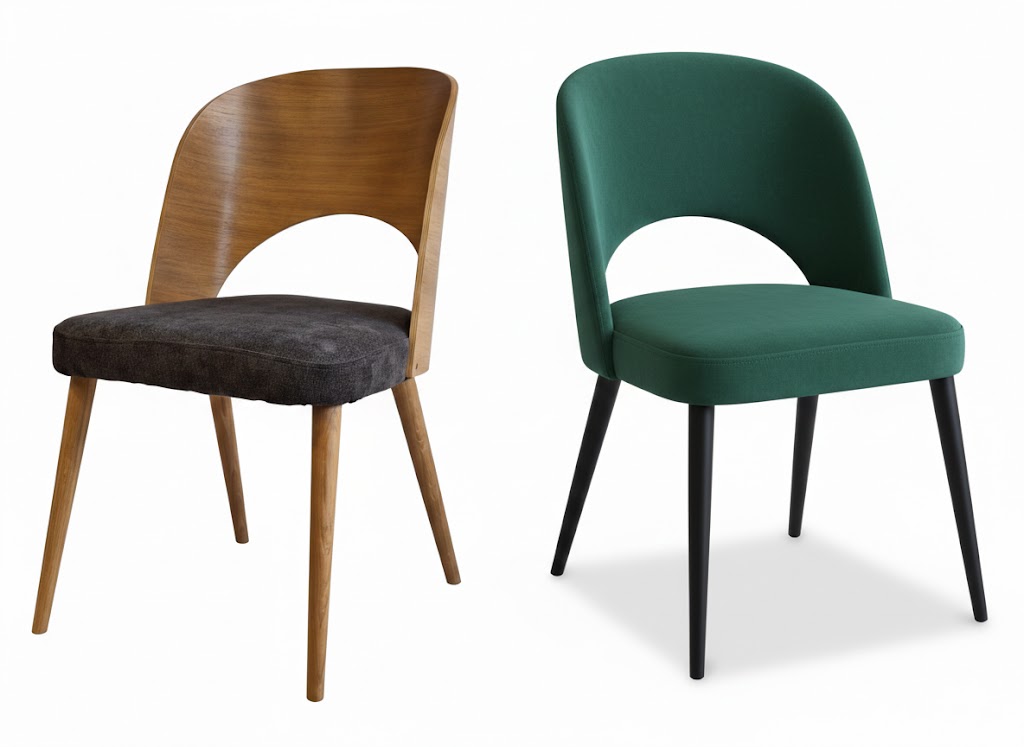 Zaokrąglony kształt tapicerowanego siedziska i oparcia, zapewniają komfort użytkowania.